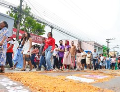 A confecção do tradicional tapete é sempre feita na noite que antecede a procissão, quando a população ano após ano não mede esforços para enfeitar as ruas por onde passa a procissão com o santíssimo sacramento.