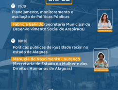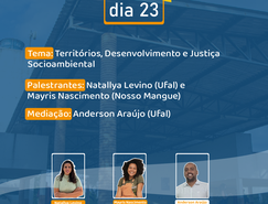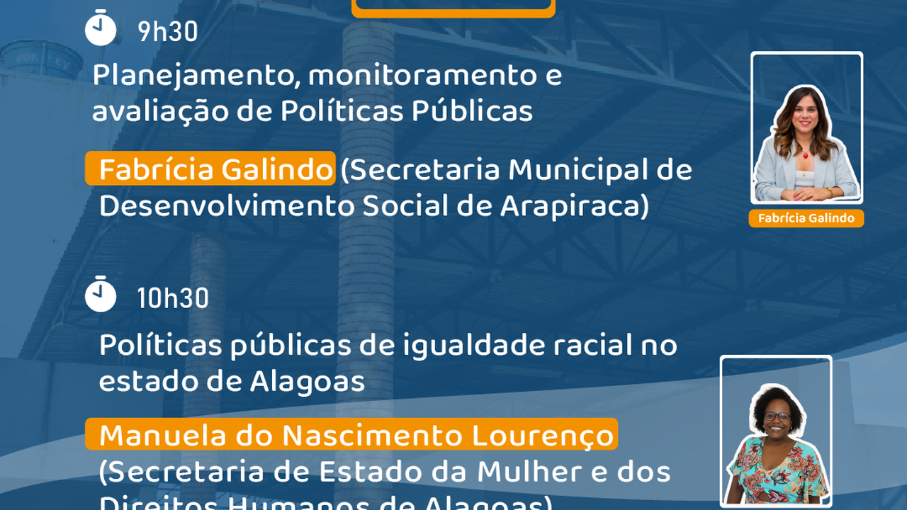 Nos dias seguintes, o seminário contará com a participação de palestrantes que atuam em diferentes frentes da administração pública e da sociedade civil. Entre os nomes confirmados estão a vereadora Teca Nelma; a especialista em comunicação, Lorena Monteiro (Wave); a professora Natallya Levino (Ufal); a representante do movimento social, Mayris Nascimento (Nosso Mangue); o presidente da Fapeal, Fábio Guedes; e Mardonio Graça, da Articulação no Semiárido Brasileiro (ASA).