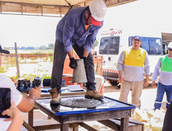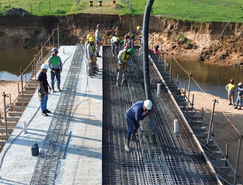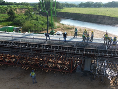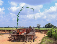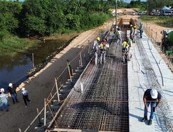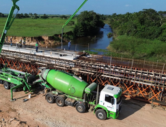 “Estamos fazendo a concretagem das longarinas e assim que essa etapa estiver concluída, será feita a laje e as cabeceiras da ponte. Essa é a sequência do trabalho de concretagem para depois fazer a terraplanagem e a retirada do aterro para que o rio volte para sua calha original”, explica o engenheiro e fiscal da obra.