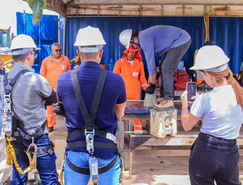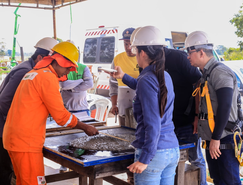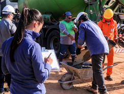 Ao lado de representantes da F.P. Construtora, empresa contratada para realizar o investimento, que tem recursos dos governos federal e municipal, o engenheiro civil Messias Santos acompanha o desenvolvimento dos serviços.