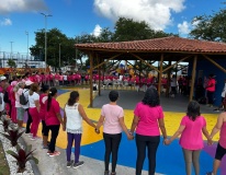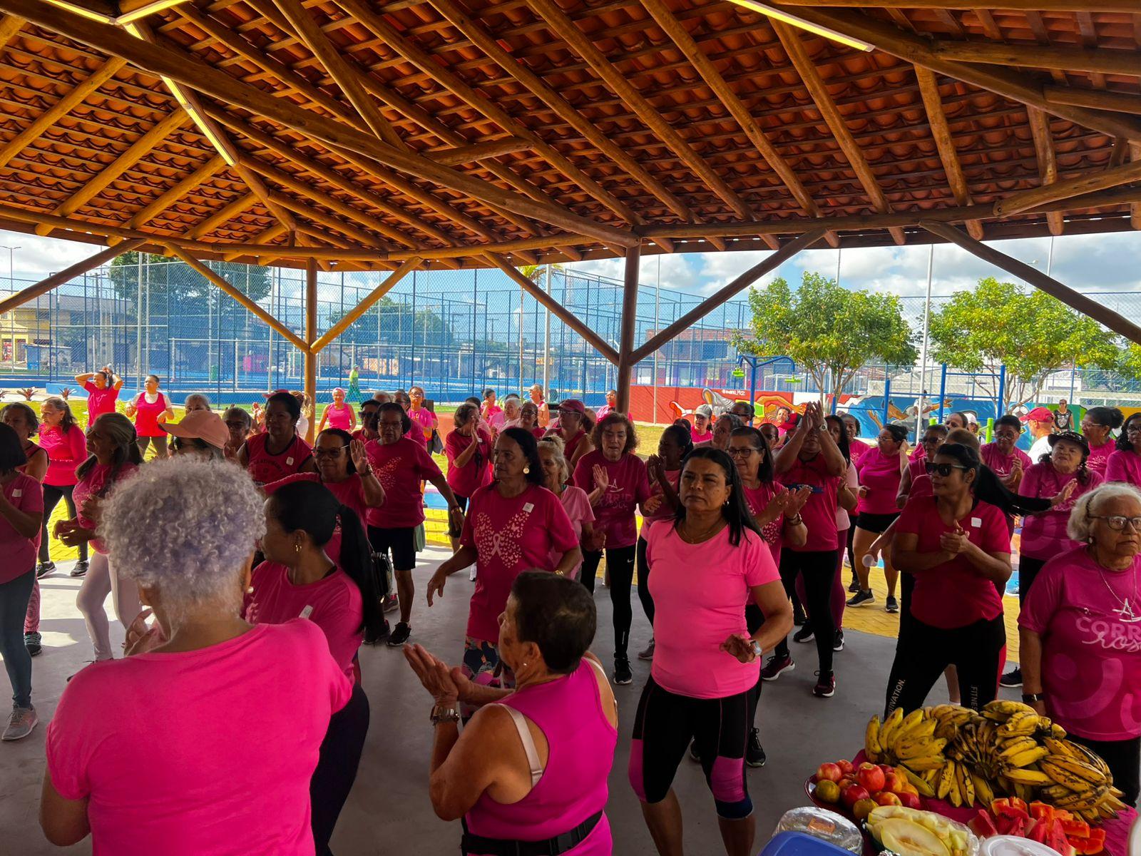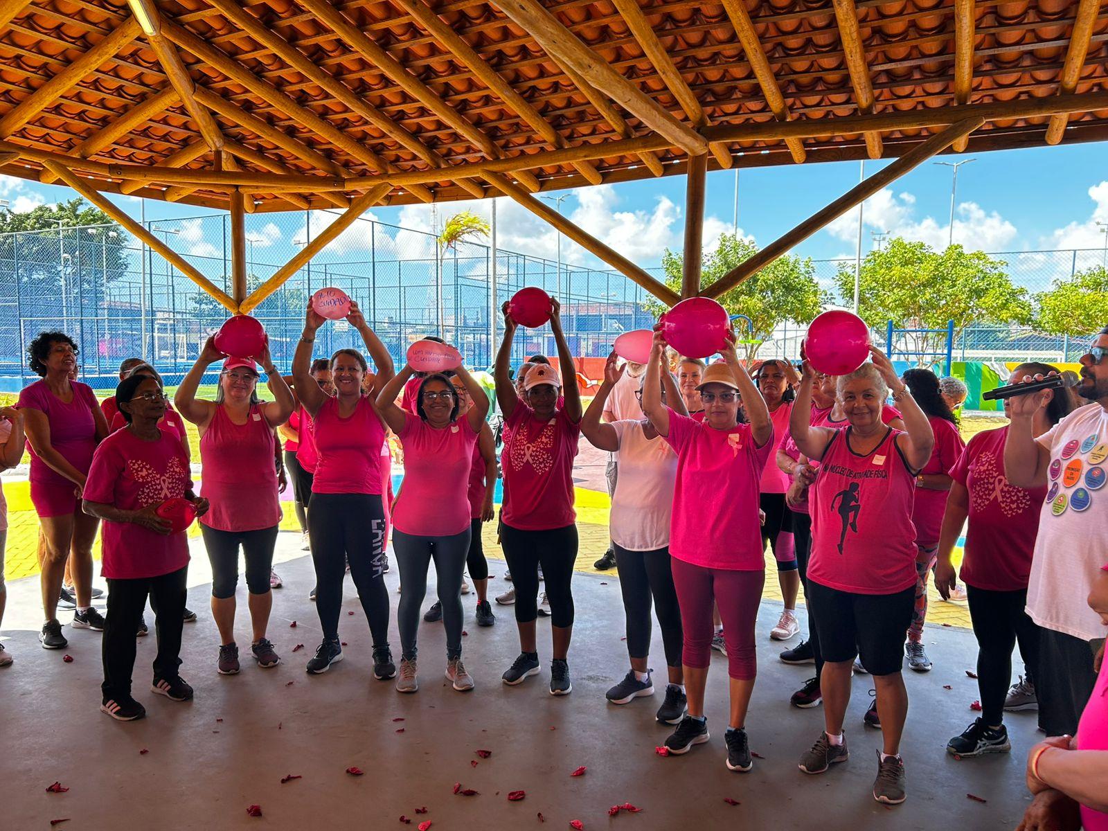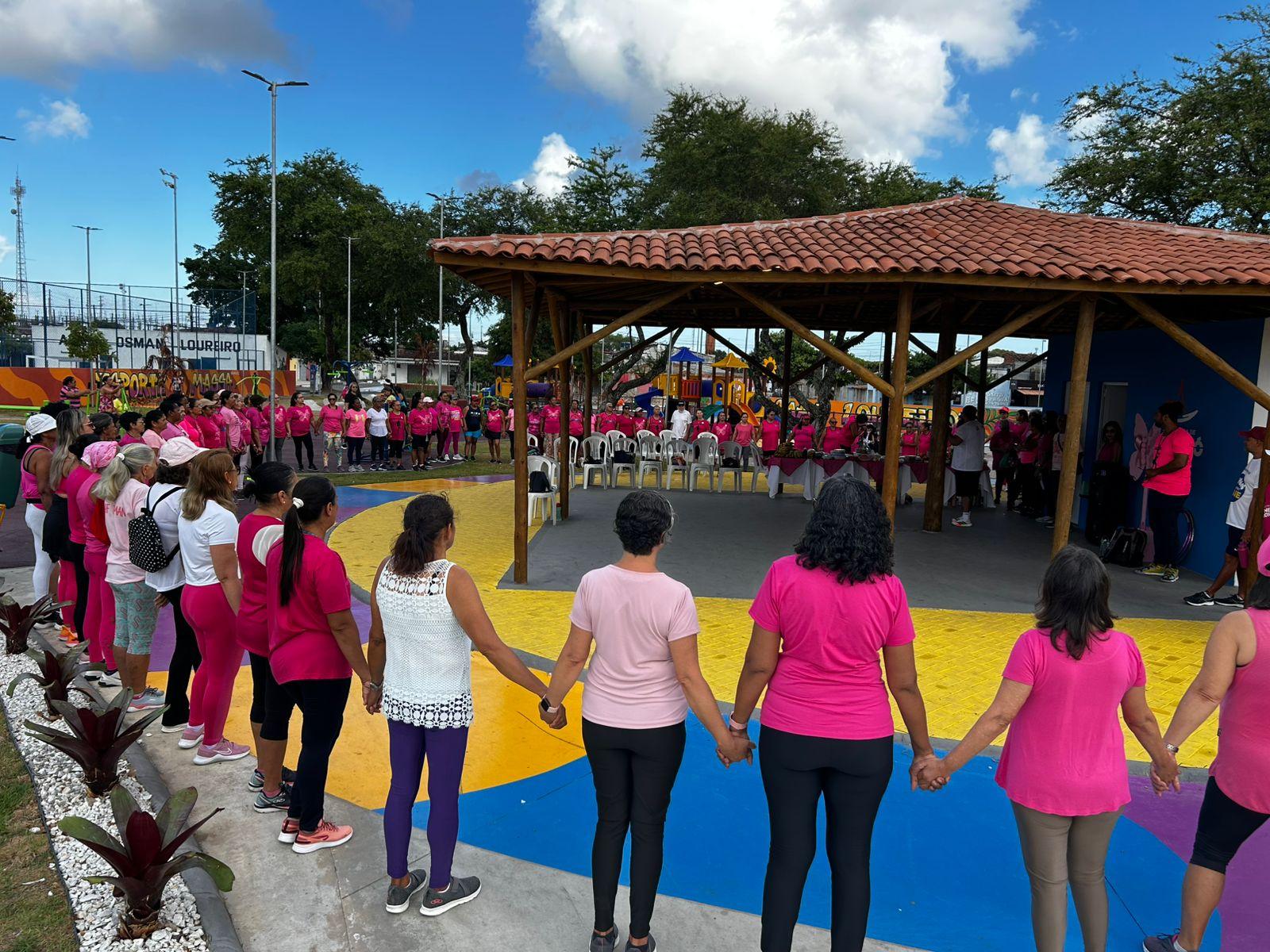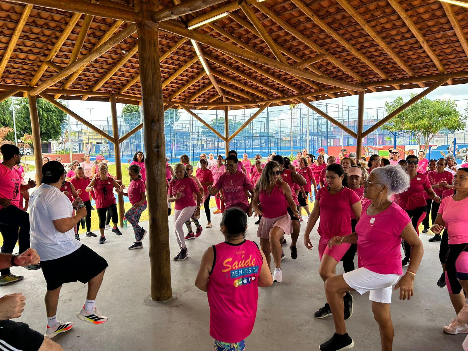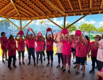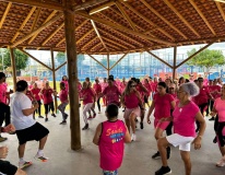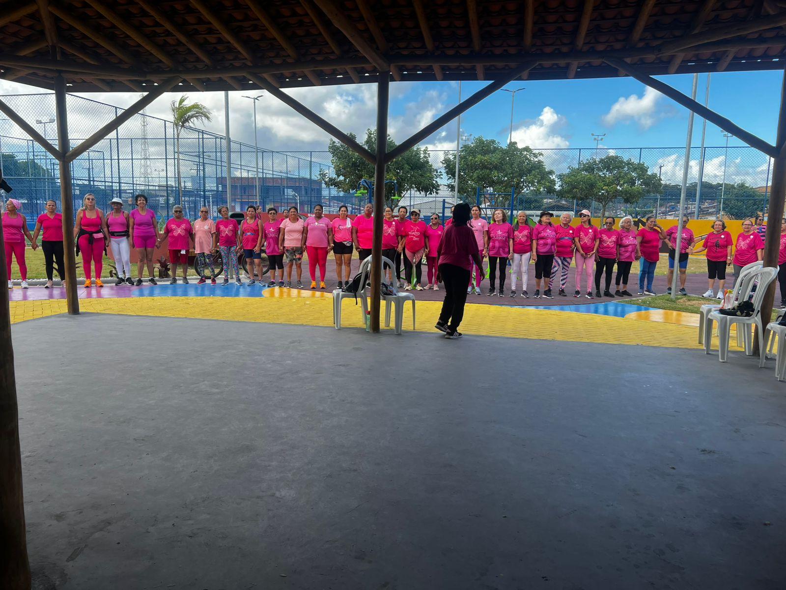 Profissionais dos Núcleos de Atividades Físicas(NAFs) promoveram nessa quarta-feira(22) mais um aulão alusivo à campanha do Outubro Rosa, com atividades de prevenção ao câncer de mama. As ações foram realizadas no NAF do Osman Loureiro, parte alta da cidade e levaram informação e conscientização para cerca de 100 usuárias.