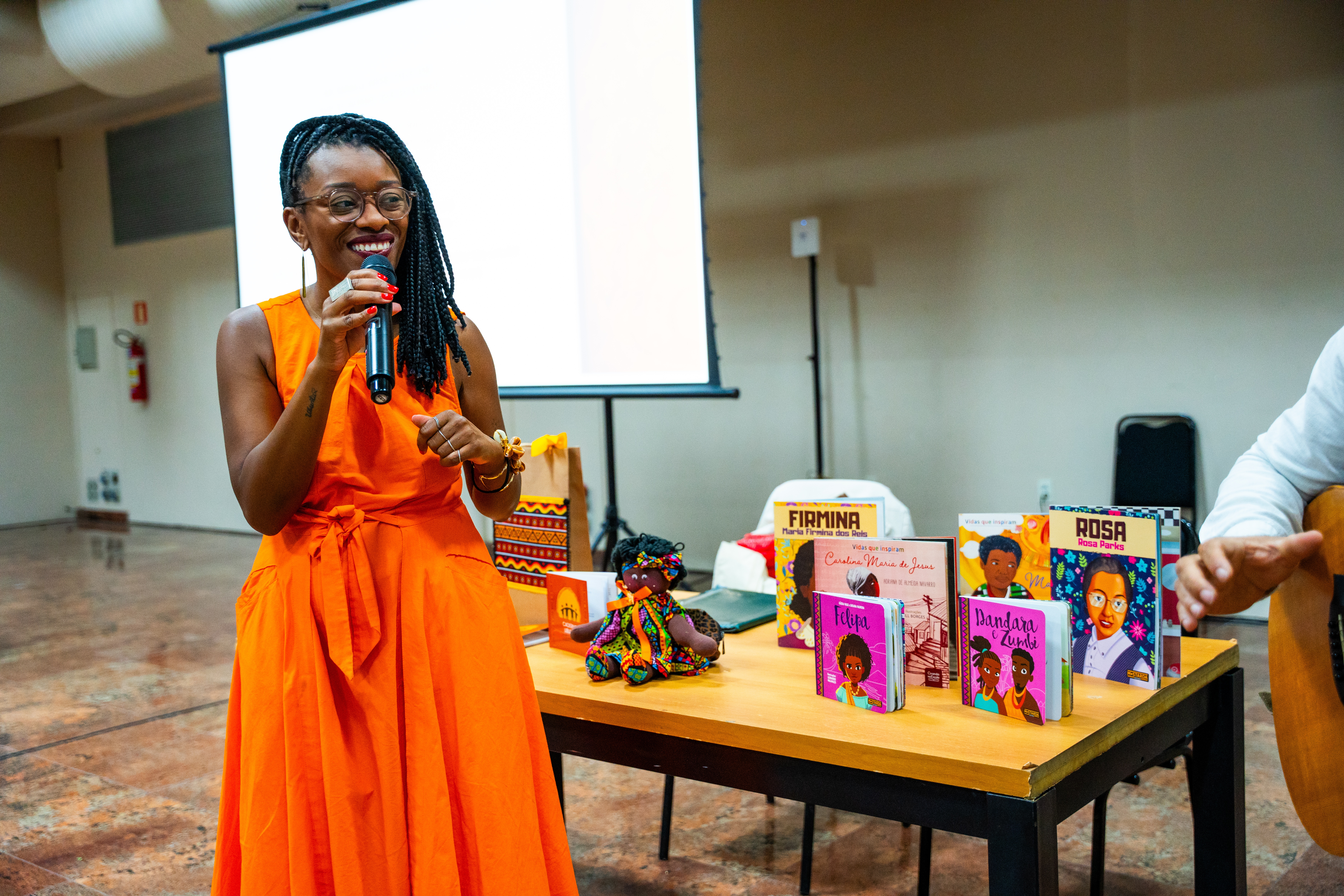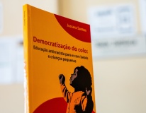 A abertura do seminário contou com o lançamento do livro “Democratização do colo: educação antirracista para bebês e crianças”, de autoria da professora-doutora Jussara Santos, que abordou o tema em uma palestra.