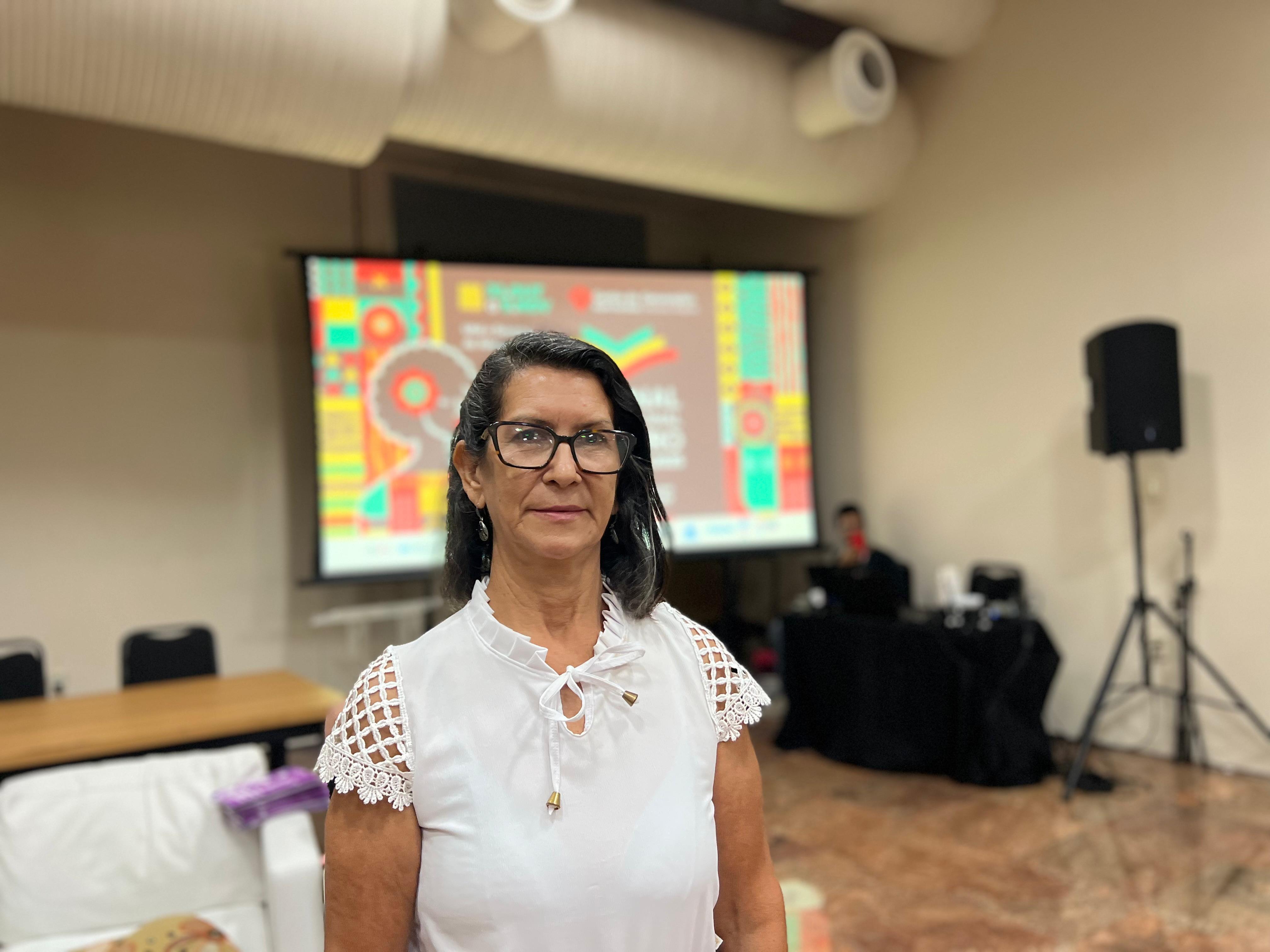 Outra experiência marcante foi apresentada por Claudinei de Maria França de Lima, assistente social e alfabetizadora do Programa Brasil Alfabetizado, que atua com idosos em uma casa de acolhimento. Ela contou a história de Dona Dorinha, 76 anos, com deficiência visual, que se emocionou ao reconhecer o próprio nome em letras feitas com cola colorida e textura.