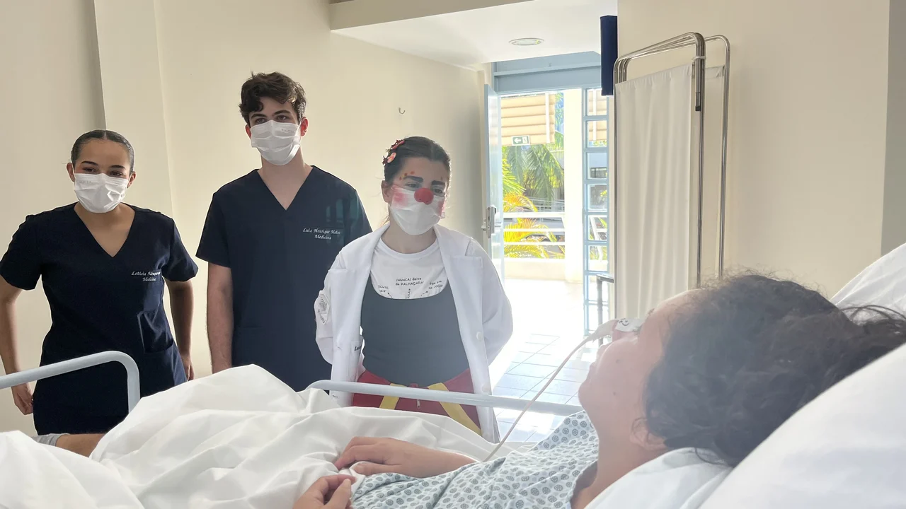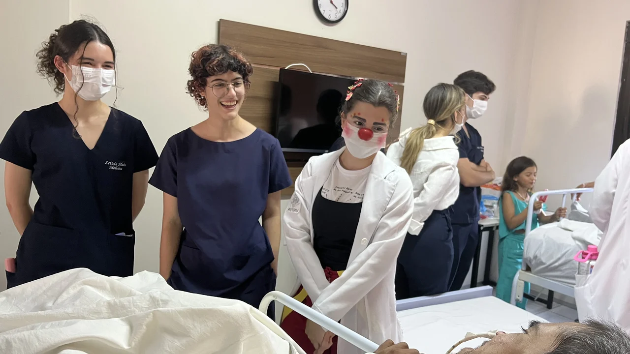 Na ocasião, estudantes vestidas de palhaço conversaram com pacientes, conheceram o perfil e a história deles, aliando humor e sensibilidade. “Buscamos mudar a rotina dos pacientes, que vivem isolados em seus leitos, proporcionando conforto e tornando a internação mais leve”, diz a estudante Luana Luna, que cursa o quinto semestre de Medicina e participa desde o primeiro semestre do projeto.