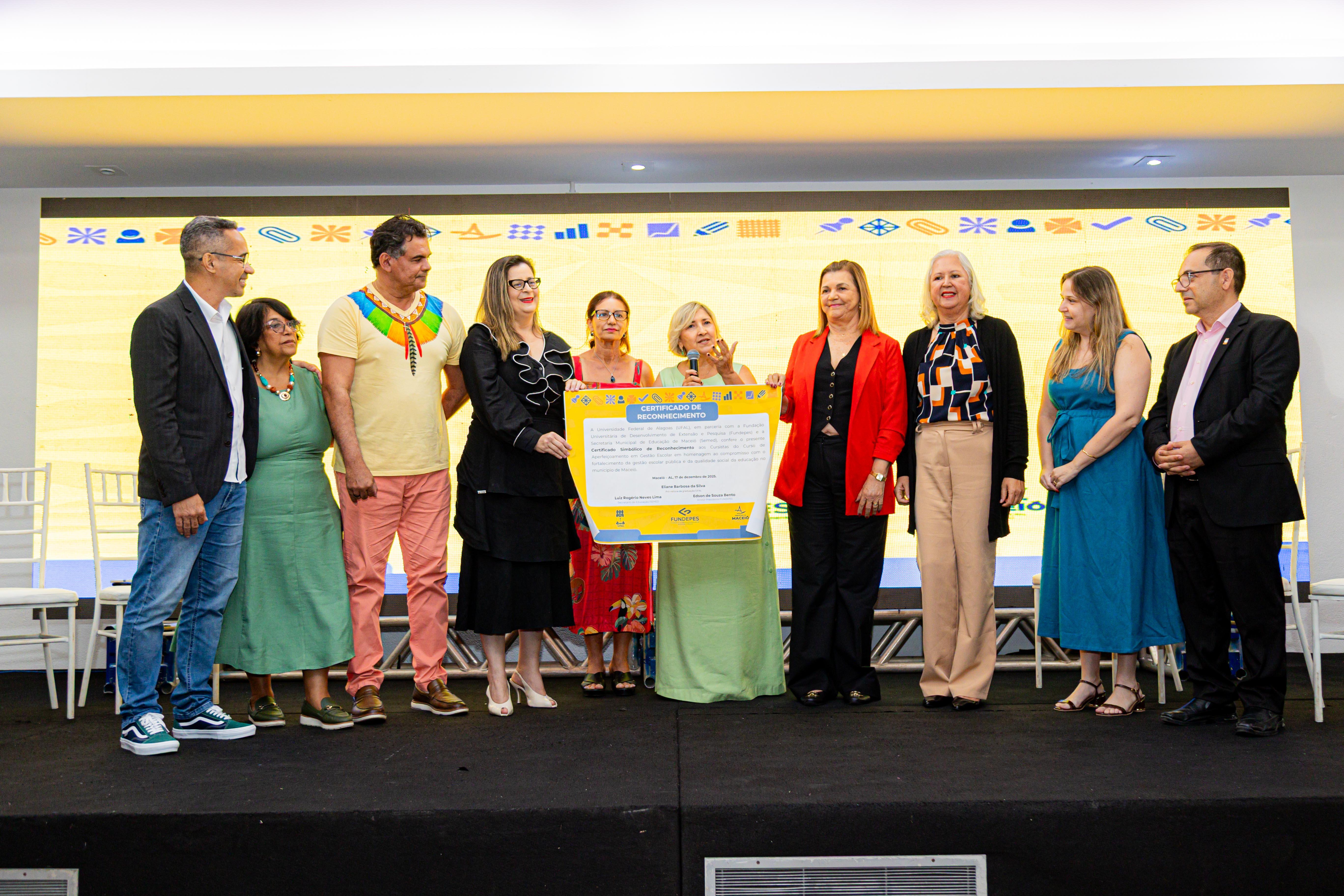Além dela, compuseram a mesa de honra outros representantes da Semed, dos gestores escolares e da Fundepes. O evento ainda contou com um acolhimento artístico-cultural para os presentes.