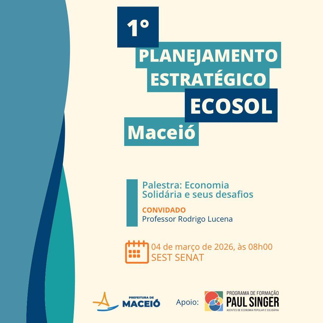 A Prefeitura de Maceió, por meio da Secretaria Municipal de Trabalho, Emprego e Economia Solidária (Semtes), promove na próxima quarta-feira, 4 de abril, o 1º Planejamento Estratégico ECOSOL Maceió, voltado para as ações de 2026. O encontro será realizado a partir das 8h, no Sest Senat, e reunirá artesãos, coordenadores de empreendimentos e representantes da economia solidária do município.