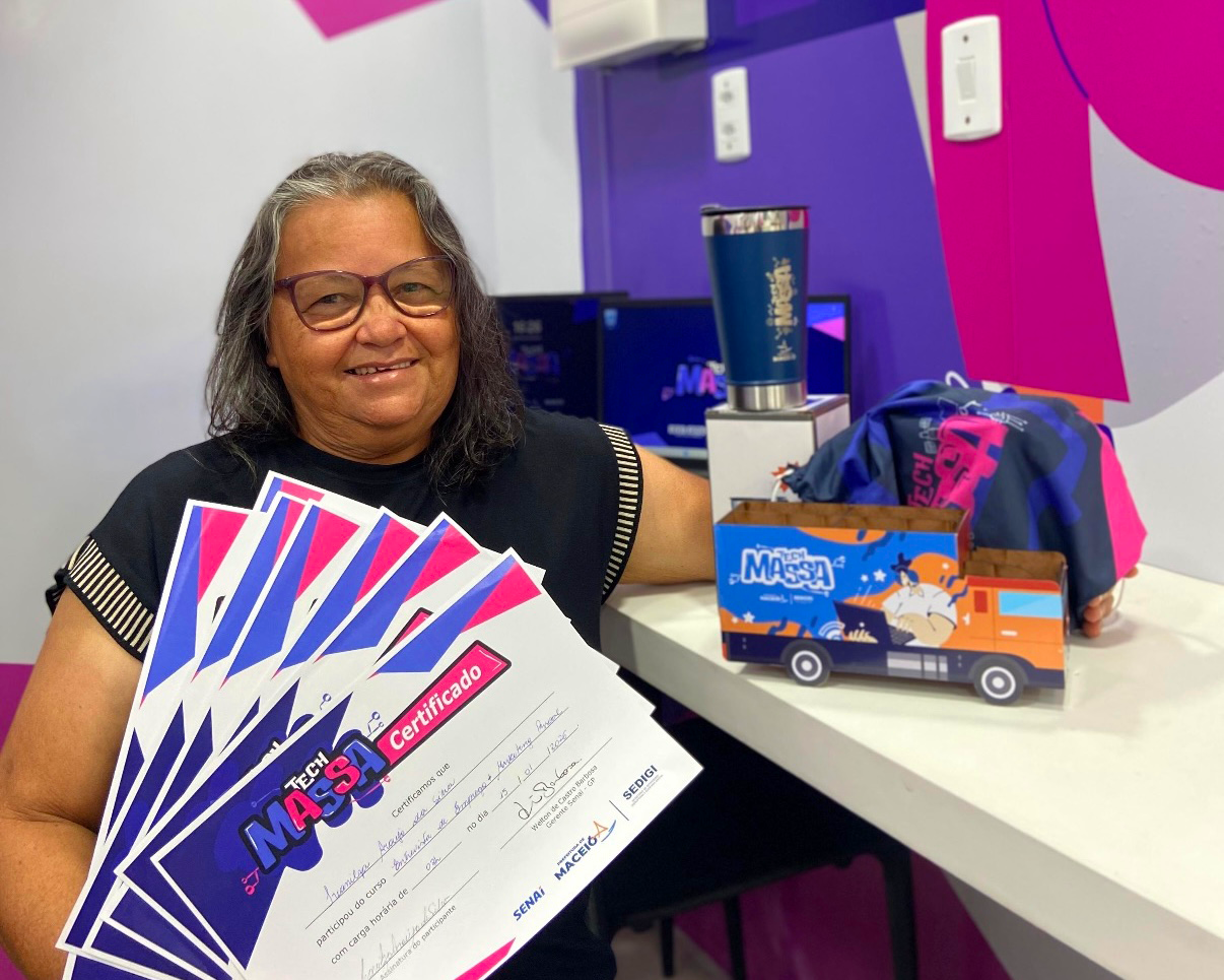 A aposentada Ivanilza Araújo foi uma das alunas beneficiadas pelo programa e destaca o impacto positivo da iniciativa em sua rotina. “Eu achava que inteligência artificial era algo muito distante da minha realidade, coisa de outro mundo. Mas no Tech Massa aprendi que ela pode ajudar em coisas simples do dia a dia, como escrever melhor, tirar dúvidas e até ajudar a crescer nos negócios. Hoje já me sinto muito mais segura usando a tecnologia”, relata.
