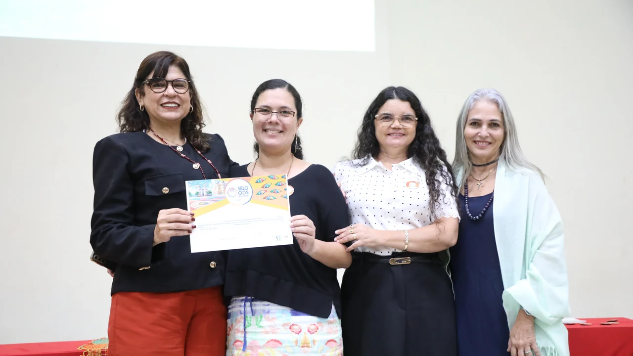Estiveram presentes na cerimônia a vice-reitora Eliane Cavalcanti, a coordenadora do Selo ODS na Ufal, Juliene Barros, a professora Nélia Calado e, como palestrante, a professora Rosaline Mota.