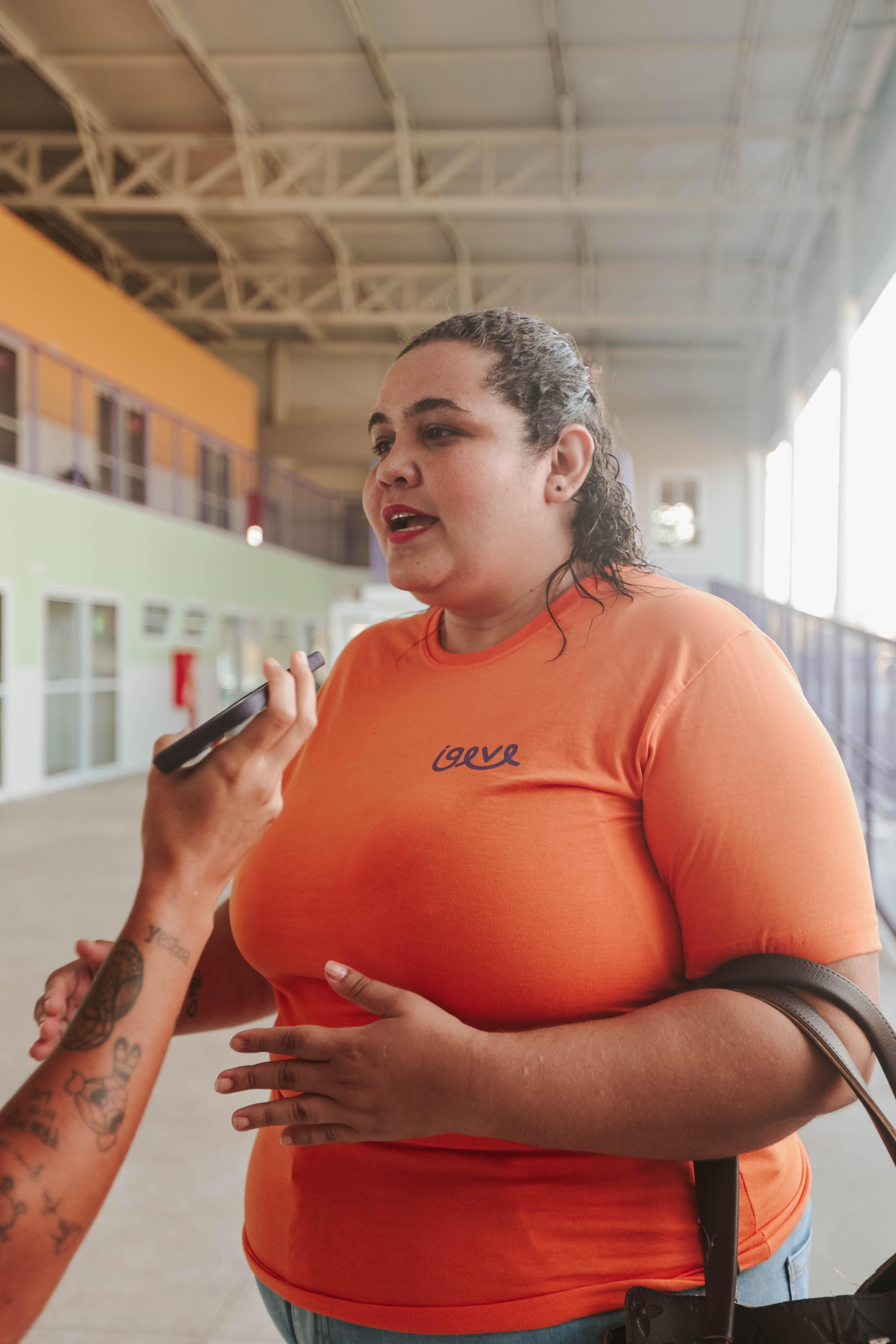 "Quando a gente arruma um trabalho que tem a possibilidade de ter a sua criança perto de você, é outra coisa, é incrível. Facilita tudo. É muito gratificante que ela esteja comigo aqui”, disse, agradecendo a oportunidade de não precisar escolher entre trabalhar e cuidar da filha, pois no Gigantinho, consegue fazer os dois.