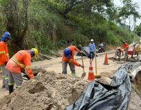 O objetivo da contenção é estabilizar o terreno inclinado e prevenir a erosão. Essa etapa é importante para garantir segurança ao trânsito de veículos e à circulação de pedestres naquela localidade.
