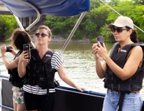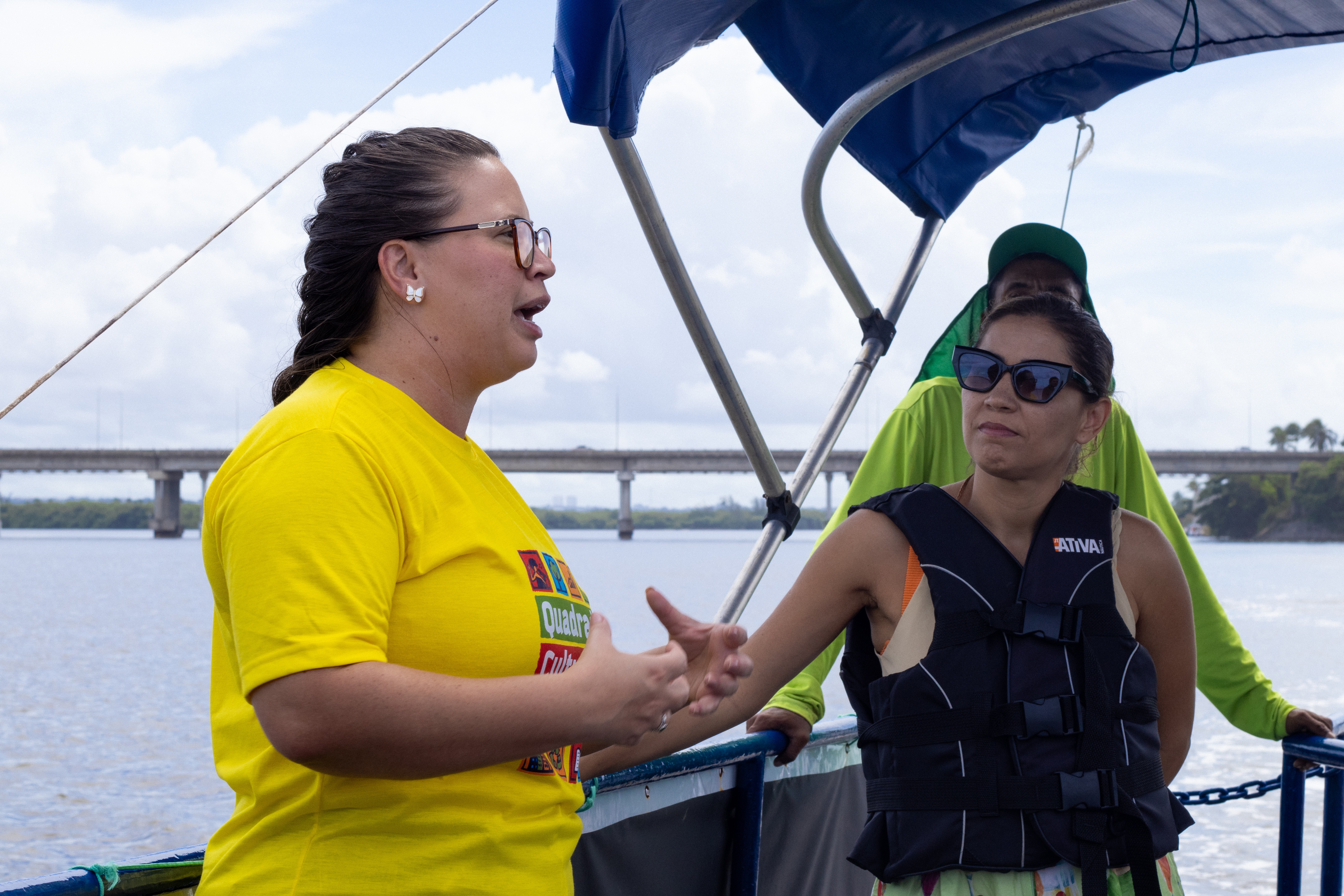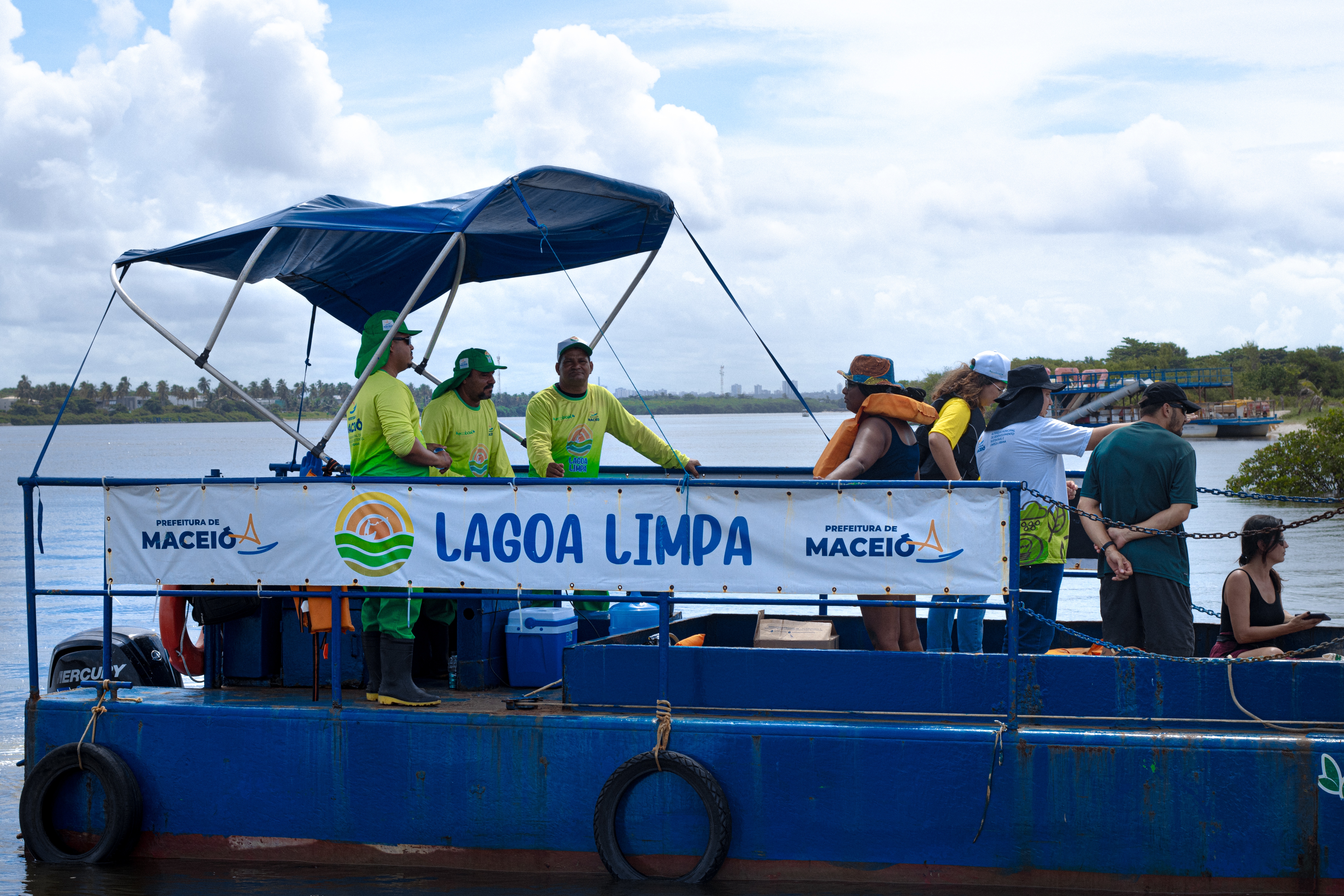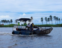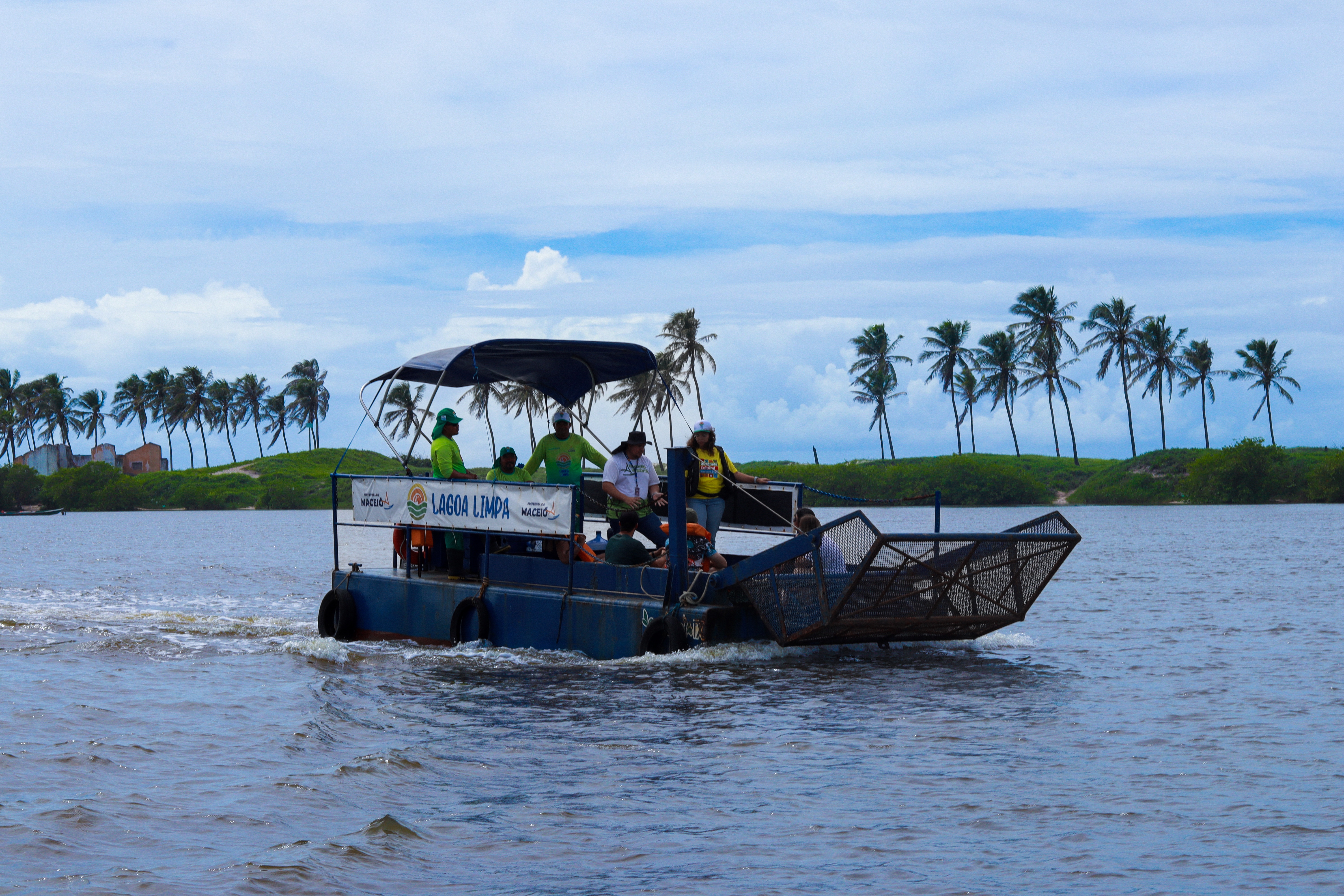 Toda a atividade teve o acompanhamento da técnica e engenharia ambiental Pietra Alcântara, do estagiário de engenharia, Givaldo Gonçalves, o operador do Ecoboat, Mozart Fonseca, e toda a equipe qie trabalha com o equipamento.
