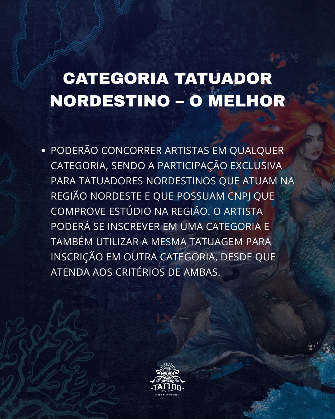 Inédita no evento, a categoria foi criada com o objetivo de valorizar e dar visibilidade aos profissionais que atuam na região. Para concorrer, os tatuadores precisam desenvolver seus trabalhos no Nordeste e possuir estúdio sediado na região, fortalecendo a identidade local e incentivando o crescimento do mercado criativo nordestino.