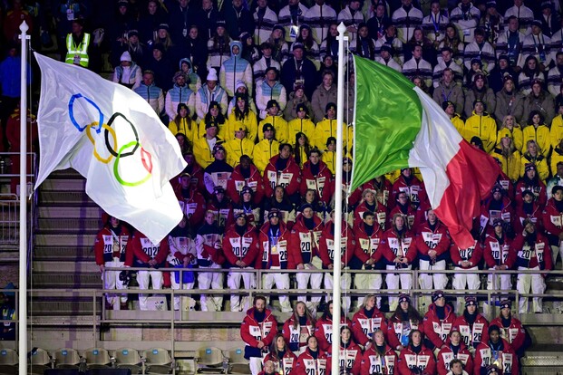 O desfile das delegações também esteve entre um dos pontos altos da festa, com a bandeira italiana sendo carregada pelos campeões olímpicos Lisa Vittozzi, do biatlo, e Davide Ghiotto, da patinação de velocidade, enquanto a do Brasil foi erguida pelo piloto de bobsled Edson Bindilatti.