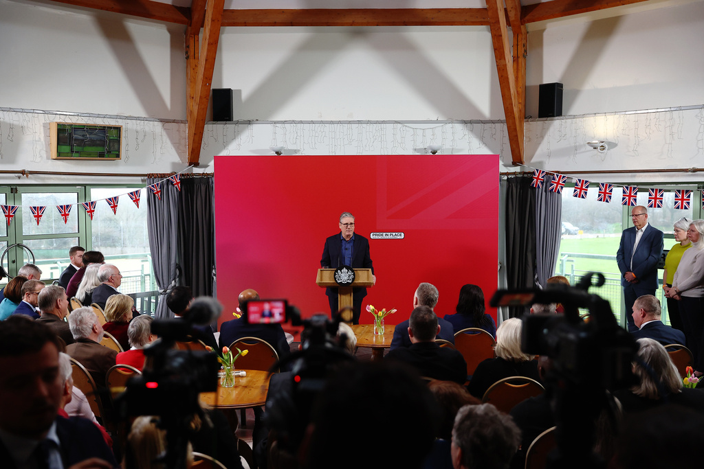 O primeiro-ministro britânico, Keir Starmer, discursa no complexo esportivo Horntye Park, em St Leonards-on-Sea, East Sussex, Inglaterra, na quinta-feira, 5 de fevereiro de 2026. (Foto de Peter Nicholls/Pool via AP)