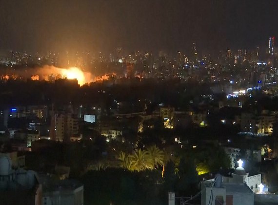 Grande explosão no horizonte noturno de Beirute enquanto os ataques aéreos israelenses continuam