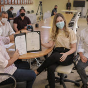 A deputada estadual Cibele Moura (PSDB) participou, na manhã desta quinta-feira (10), no Salão de Despachos do Palácio República dos Palmares, da assinatura da ordem de serviço para construção da escadaria no povoado Santa Luzia, em Barra de Santo Antônio, Litoral Norte do Estado. Como representante da região na Assembleia Legislativa de Alagoas (ALE), Cibele destacou a importância da obra e o empenho da prefeita do município, Emanuella Moura para que se tornasse realidade. O trabalho da prefeita também foi reconhecido pelo governador Renan Filho, que anunciou novos projetos para o município e a região.