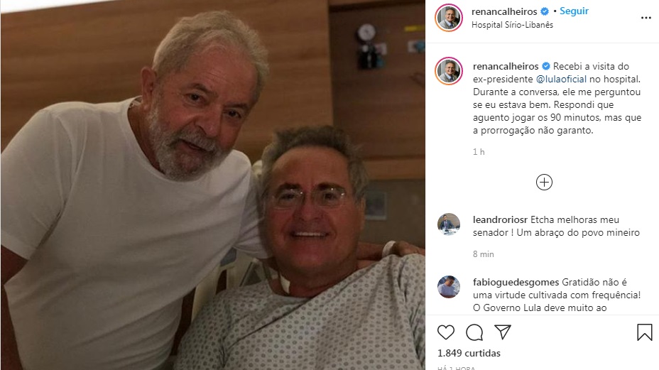 O senador Renan Calheiros, que está no Hospital Sírio Libanês para exames de rotina e alguns procedimentos cirúrgicos simples, recebeu na manhã desta quinta (17) a visita do ex-presidente da República Luiz Inácio Lula da Silva (PT).