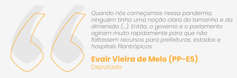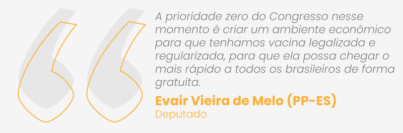 O desempenho do governo federal em meio à pandemia foi satisfatório, com esforço extraordinário. A conclusão é do vice-líder do governo federal na Câmara dos Deputados, Evair Vieira de Melo (PP-ES), que garante que a vacinação está “muito próxima” de acontecer. “A prioridade zero do Congresso nesse momento é criar um ambiente econômico para que tenhamos vacina legalizada e regularizada, para que ela possa chegar o mais rápido a todos os brasileiros de forma gratuita.”