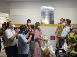 “A convite do prefeito @claudiofilhocacau , do vice-prefeito @walteravelinoalcantara , e da secretária municipal de Educação Karoline Flora, tive a felicidade de participar hoje,14, da inauguração da nova escola Dr. Cláudio Roberto da Costa Santos, no povoado Pedras, em Marechal Deodoro. Com ginásio poliesportivo e a primeira com piscina semiolímpica do município, trata-se do maior investimento em Educação da história de Marechal”.