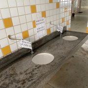 Ele complementa ainda que ‘o prédio apresenta diversas infiltrações e, em alguns pontos, o risco de desabamento é iminente’. “Quando chove, os professores ministram a aula com um guarda-chuva ou fecham a sala por conta da mesma não apresentar condições de permanência. A encanação do prédio necessita de uma revisão, haja vista a quantidade de torneiras e afins entupidas”, destaca.