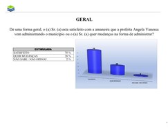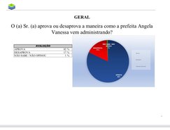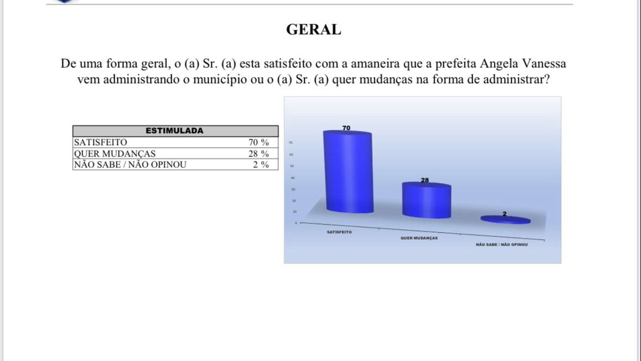 Outro ponto forte na pesquisa diz que 70% da população não quer mudança na administração da prefeitura e está satisfeita com o grupo político atual.