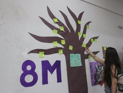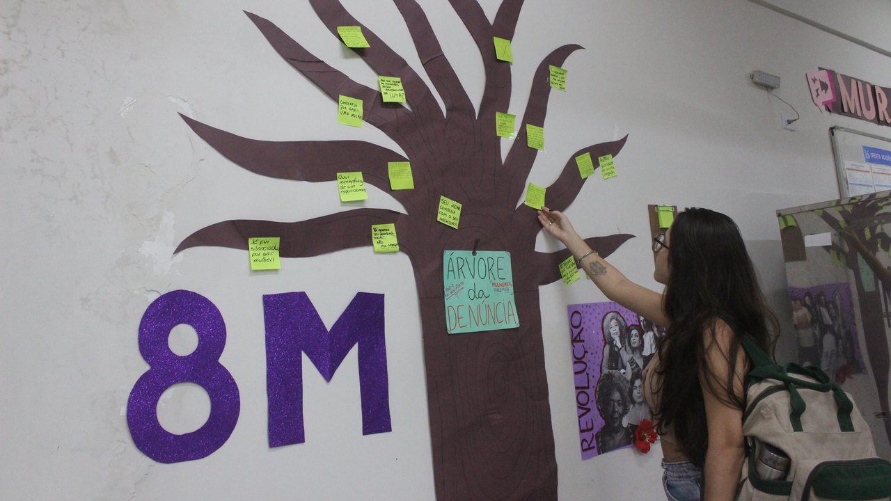 O evento também contou com momento de interação da mesa com o público, através de perguntas e de uma dinâmica que permitia às mulheres presentes denunciarem, de forma anônima em recortes de papel, violências de gênero que já sofreram. A dinâmica tem o intuito de expor, por meio de uma “árvore da denúncia” de papel colada no corredor do COS, as opressões sofridas por mulheres constantemente.