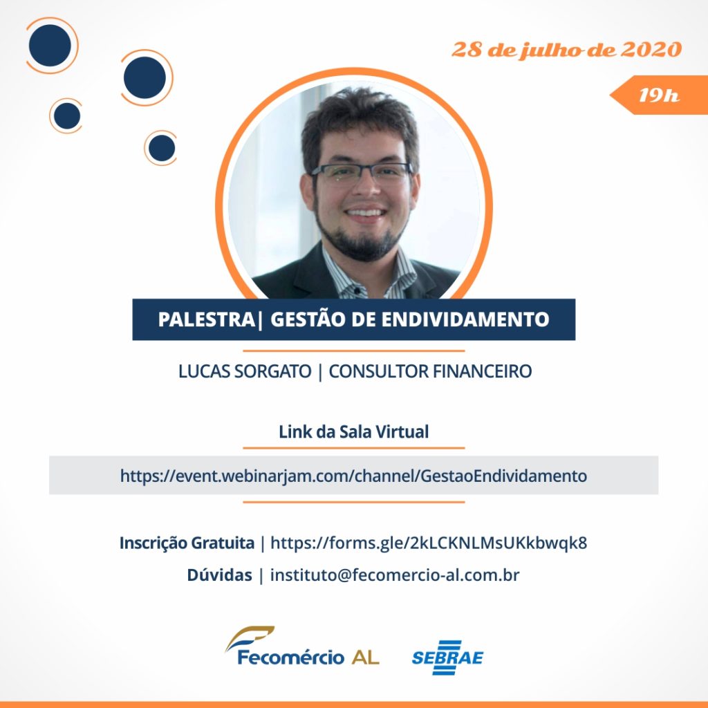 Com o decreto de isolamento social, a maior parte das empresas tiveram suas atividades suspensas, mas os compromissos financeiros e tributários continuaram. Como consequência, muitos estabelecimentos comerciais recorreram a empréstimos para poderem sobreviver à pandemia do Covid-19 (coronavírus). Pensando nisso, a Federação do Comércio de Bens, Serviços e Turismo do Estado de Alagoas (Fecomércio AL), em parceria com o Sebrae AL, realizará no dia 28 de julho, às 19h, a palestra “Gestão de endividamento”, com o economista Lucas Sorgato. O evento será online e as inscrições gratuitas podem ser feitas no site da Federação.