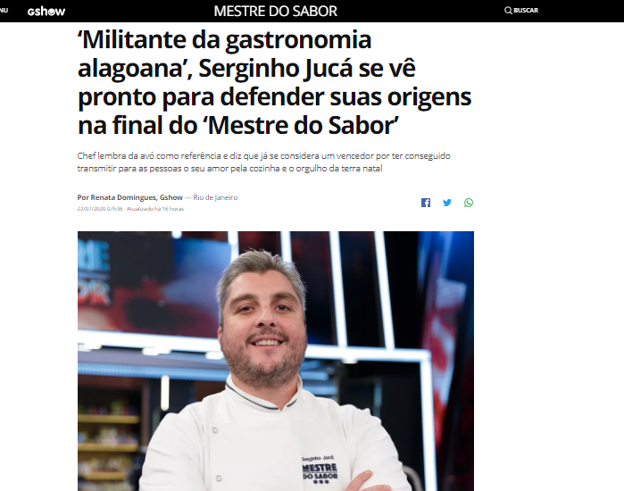 A trajetória de Serginho Jucá no programa e na arte gastronômica foi tema de uma matéria especial no site Gshow, onde o cozinheiro fala sobre o que aprendeu fora do Brasil, a devoção pela culinária local, a admiração pela avó, a ligação afetiva com os ingredientes locais e o reconhecimento nacional como representante da gastronomia de Maceió, o qual define como principal objetivo da participação no reality.