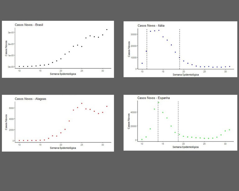 O professor Gabriel Badue destaca os gráficos em anexo mostrando a situação geral no Brasil, a específica de Alagoas e, a título de comparação, as curvas de novos casos na Espanha e na Itália: “Vejam a diferença de comportamento. Lá [nesses países europeus], eles iniciaram a flexibilização das atividades em maio depois de quarentena severa. Aqui, nós estamos patinando há mais de 130 dias. O desencontro de informações das autoridades, somada às péssimas condições de vida de grande parte da nossa população, além do desrespeito às medidas de segurança, podem provocar um agravamento da situação”, lamenta o professor da Ufal que assina o boletim com outros cinco pesquisadores.