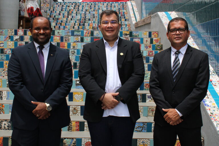 Diretoria com o presidente Renné Costa, secretário Paulo Guimarães e tesoureiro Esvaldo Silva