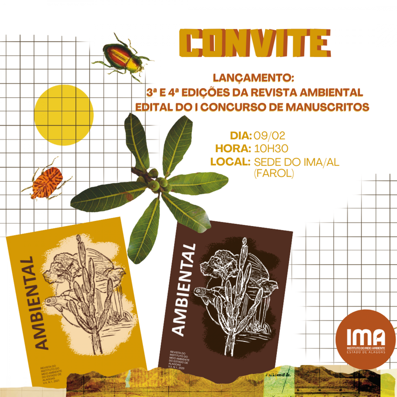 O Instituto do Meio Ambiente do Estado de Alagoas (IMA/AL) lança, na próxima quarta-feira (09), às 10h30, duas edições da Revista Ambiental, sua publicação técnica com manuscritos sobre biodiversidade. No mesmo evento será lançado também o I Concurso de Manuscritos que deverá premiar, em dinheiro, os três melhores trabalhos que forem enviados para compor a quinta edição da Revista.