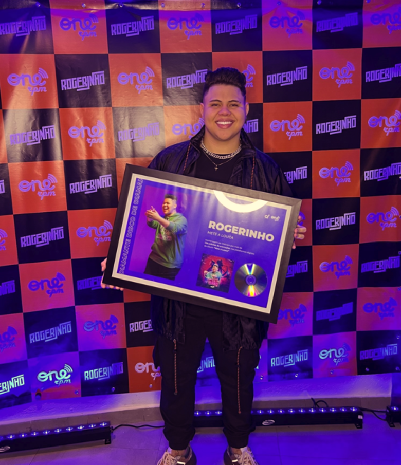Cearense de Sobral, MC Rogerinho, de 21 anos, é um dos nomes de destaque da música nordestina, na chamada linha bregadeira romântica. O primeiro sucesso do cantor foi “Só Você”, que viralizou nas redes durante a pandemia. Desde então, não parou mais. Nesta semana, ele recebeu o Disco de Diamante pelo êxito do single “Mete a Louca” (Vinicius Amaral, Léo Santana, Elyab e Iago Oliveira), que soma mais de 180 milhões de plays combinados (só o vídeo no YouTube tem quase 50 milhões de visualizações). A entrega aconteceu em São Paulo, durante a passagem do artista pela cidade para uma apresentação, onde foi recebido pela equipe da ONErpm, responsável pela distribuição digital de suas músicas e pela produção da placa.
