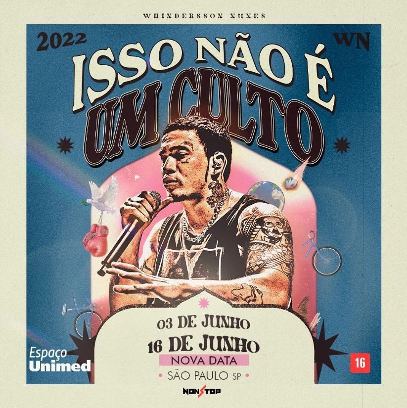 Whindersson Nunes é um dos maiores fenômenos de audiência da internet. E conseguiu expandir esse sucesso para os palcos. A prova disso é que lota grandes casas ao redor do mundo. E ele chega no Espaço Unimed, antigo nome do Espaço das Américas, dia 16 de junho, quinta-feira, para apresentar seu novo show “Isso Não É um Culto”.