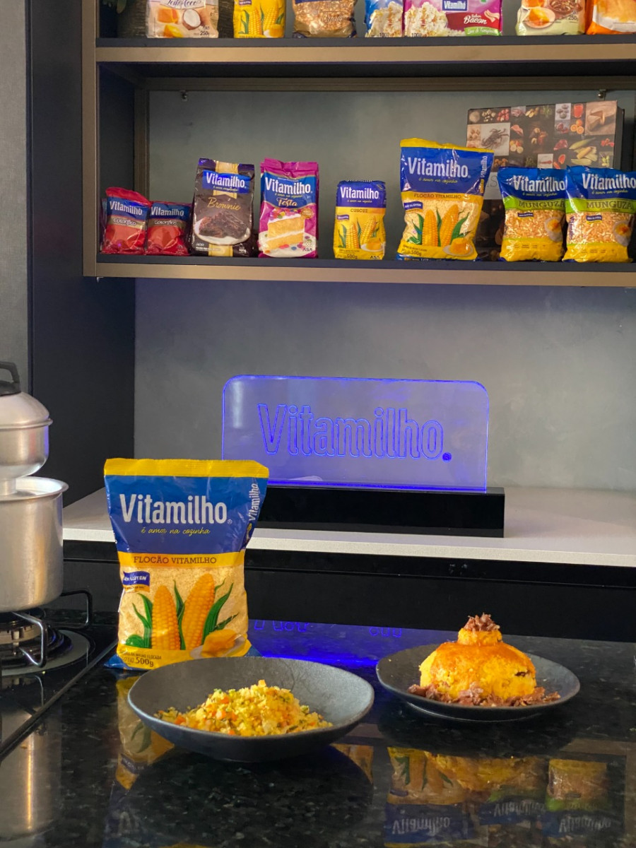 Mais lembrada durante o período junino, a Vitamilho conta com os seguintes produtos: flocão, flocão sabores, farinha de milho pré-cozida, flocão de arroz, misturas para bolo, amido de milho, mugunzá, canjiquinha/curau diet, canjiquinha/curau tradicional, pipocas para micro-ondas Vitapop Vitamilho, xerém, colorífico, e tempero misto. Conheça mais em @vitamilho