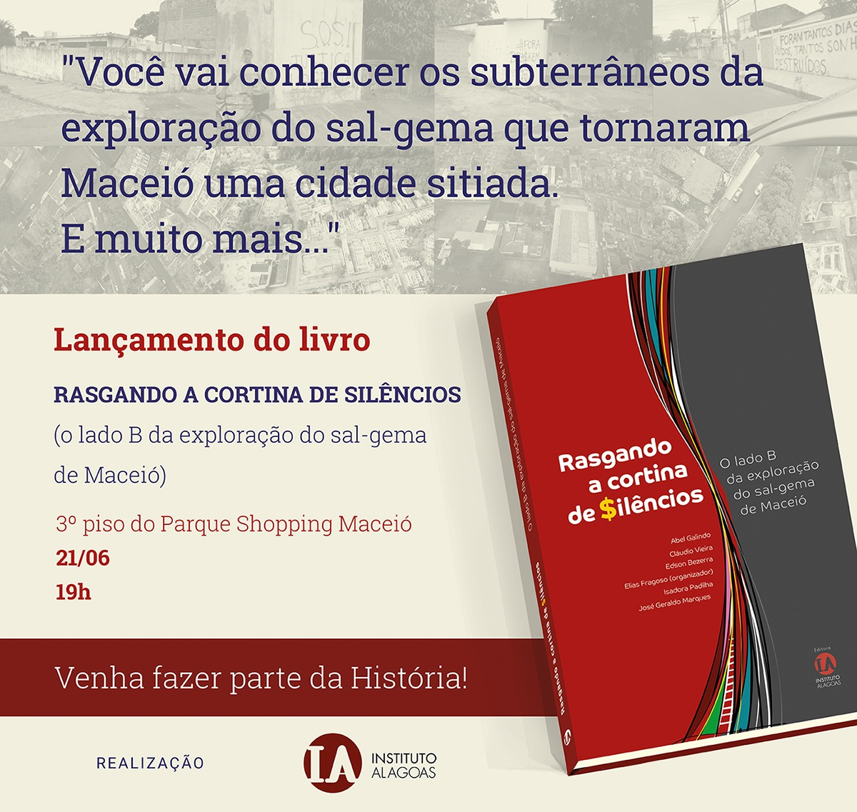 Há meio século, parte importante da história de Alagoas e de Maceió esteve submersa numa camada de tergiversações para ocultar negociatas, erros técnicos, anomias e prevaricações ao longo da exploração da principal riqueza mineral do estado: o sal-gema. Agora, no entanto, o livro “Rasgando a Cortina de Silêncios – o lado B da exploração do sal-gema de Maceió” faz uma abrangente análise técnica e crítica sobre os bastidores dessa mineração predatória, denunciando falhas, omissões e condutas espúrias de autoridades em todos os níveis.