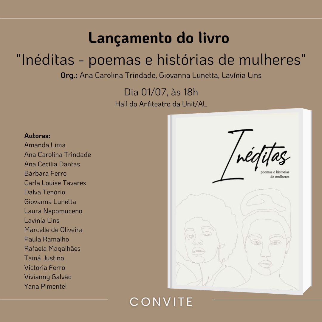 As percepções e vivências de 16 mulheres em Maceió deram origem a um livro de poesia e prosa, onde os desafios da mulher na contemporaneidade é o tema principal. Denominado de “Inéditas – poemas e histórias de mulheres”, a obra, idealizada pela advogada familiarista Ana Carolina Trindade Cohen, será lançada no dia 1º de julho, às 18h, no campus do Centro Universitário Tiradentes (Unit/AL).