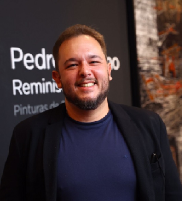 “Na obra de Pedro, a memória afetiva se faz presente pela fricção entre a adição e a subtração das formas, pela expansão e contração das cores”. Para o artista, este trabalho é recheado de simbolismo, tanto por celebrar sua primeira década de trajetória em exposições, quanto por ser realizado na Galeria de Arte do Cesmac, onde ele se formou em Arquitetura. Os temas elegidos pelo olhar-memória de Pedro surgem à vista através de camadas e camadas de tinta densa sobrepostas, técnica conhecida como empasto”, analisa Caroline. O observador é convidado a percorrer visualmente a intimidade da pele das imagens, estando estas ocultas pelo volume da tinta ou delineadas através das ranhuras que não raramente deixam entrever as cores anteriormente utilizadas e dormentes sob a superfície final.