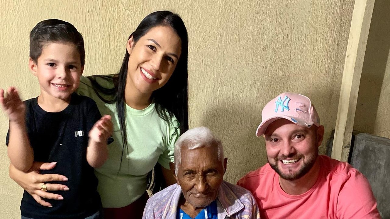 Migrante do Estado de Sergipe, Seu Lucindo nasceu na cidade de Frei Paulo em 21/04/1921 e foi trabalhador rural a vida toda. “Neste sábado ele comemorou 102 anos, completamente lúcido. Se locomove bem, come, toma banho e faz quase tudo sozinho. Adora contar suas histórias do Sergipe e de vida. Ele diz que conheceu pessoalmente quando menino o Lampião e seus comparsas”, disse a neta Natane Corvino, que comemorou o aniversário do avô com seu esposo Diego e o filho Guilherme, que é o xodó do bisavô.