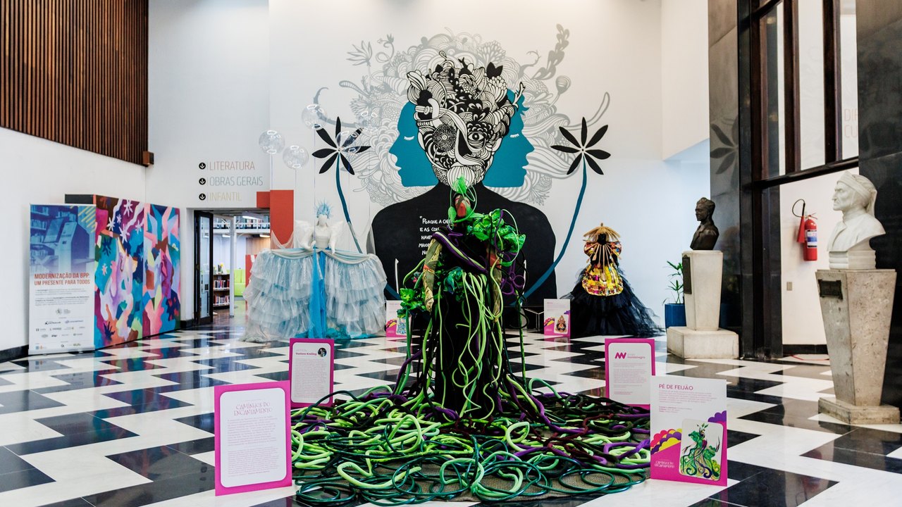 Curitiba, outubro de 2025 – Sucesso por onde passa, a exposição “Caminhos do Encantamento” acaba de desembarcar em Curitiba, onde ficará aberta ao público até o dia 20 de outubro, na Biblioteca Pública do Paraná, com figurinos incríveis criados pelo artista visual Gustavo Krelling a partir de materiais de reuso. Antes de chegar ao novo destino com seu formato completo, a mostra passou pela cidade de Uberlândia; pela Luka Art Gallery, que funciona dentro do Palácio Biester, na cidade de Sintra, em Portugal, na cidade de Sintra; e pela Casa Monsenhor Celso, na cidade de Paranaguá, no litoral paranaense. Em 2021, a exposição teve figurinos exibidos no Teatro Guaíra, em Curitiba, mas agora retornou com diversos novos trabalhos.