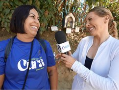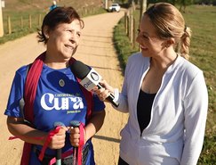 O programa também conhece Sueli, que é de Curitiba (PR) e fazia a caminhada com o marido, quando encontrou o grupo no caminho por acaso e descobriu que todas tinham o mesmo objetivo dela, agradecer pela cura.