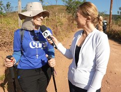 Abiane vai conversar com Bernadete, que já passou pelo tratamento do câncer de mama duas vezes. Ela relatou que decidiu fazer a caminhada para lidar com um processo de luto, pela perda de uma filha, para encontrar a paz no coração e também para buscar a cura espiritual junto de outras pessoas com o mesmo objetivo.