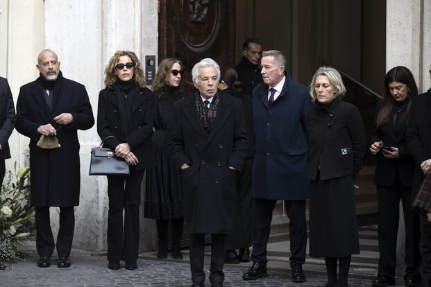 Na entrada, foram colocadas almofadas de flores brancas e duas coroas de rosas enviadas pela Prefeitura de Roma e pelo Teatro dell'Opera, histórica casa de espetáculos da capital italiana, enquanto uma rosa vermelha decorava o caixão do estilista.